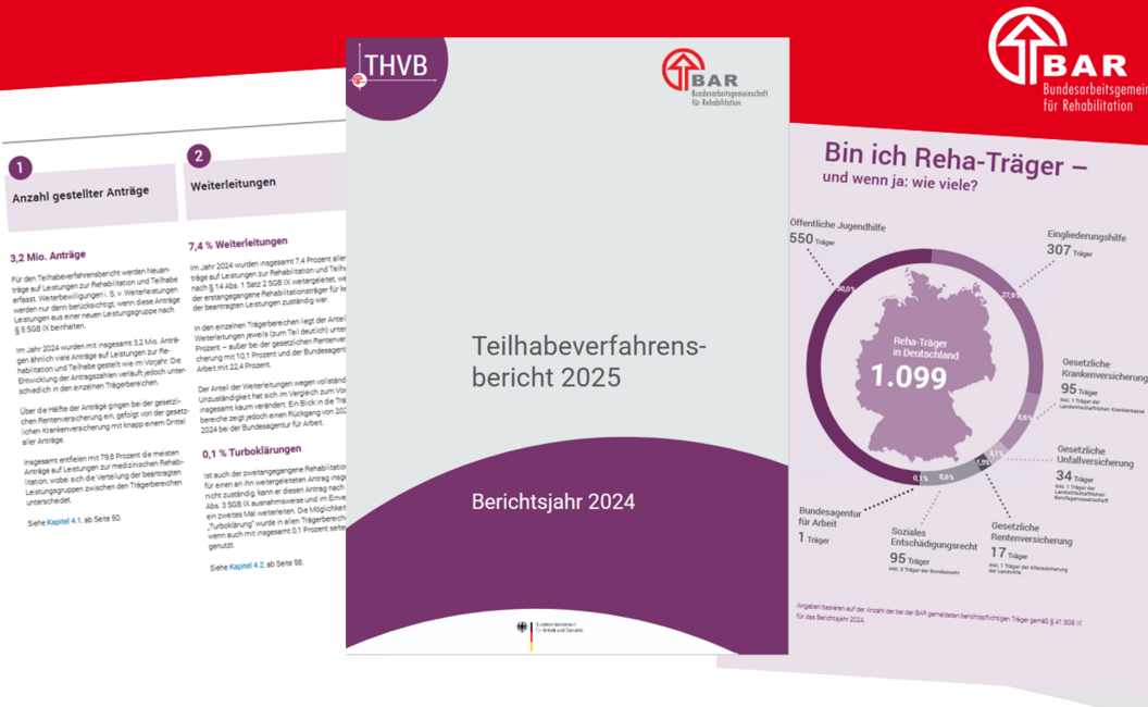 Teilhabeverfahrensbericht Der Teilhabeverfahrensbericht 2025 ist veröffentlicht. Hier finden Sie darüber hinaus allgemeine Informationen zum THVB und Sie erhalten Infos rund um die Datenübermittlung für Reha-Träger.