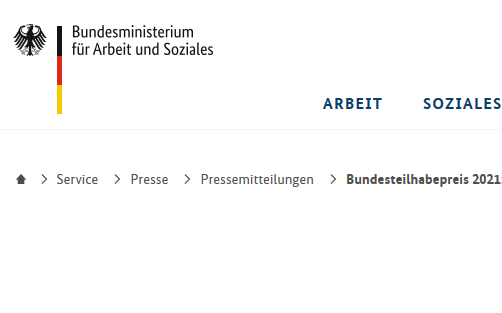 Das Bundesministerium für Arbeit und Soziales (BMAS) lobt in diesem Jahr zum dritten Mal den mit insgesamt 17.500 Euro dotierten Bundesteilhabepreis aus. Mit dem Preis werden die drei besten Gute-Praxis-Beispiele und Modellprojekte ausgezeichnet, die vorbildlich für einen inklusiven Sozialraum sind. Wichtig dabei ist die Übertragbarkeit auf andere Kommunen oder Regionen sowie die Schaffung von mehr Teilhabechancen für alle. Das Thema des Bundesteilhabepreises 2021 lautet: "Unterstützung, Assistenz, Pflege – gesellschaftliche Teilhabe auch in Corona-Zeiten"