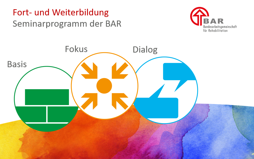 Die BAR stellt ihr Fort- und Weiterbildungsangebot für das Jahr 2021 vor. Die Corona-Pandemie hat weiterhin massive Auswirkungen auf Fort- und Weiterbildungsangebote, auch auf die der BAR. Mit Online-Seminaren und dem neuen e-Learning-Kurs möchten wir mit einem ortsunabhängigen, flexiblen Seminarangebot unserem gesetzlichen Auftrag der trägerübergreifenden Fortbildung zu Themen aus Reha und Teilhabe verstärkt auf digitalem Wege nachkommen. Unsere bewährten Präsenz-Veranstaltungen finden im Juni und Juli 2021 statt.