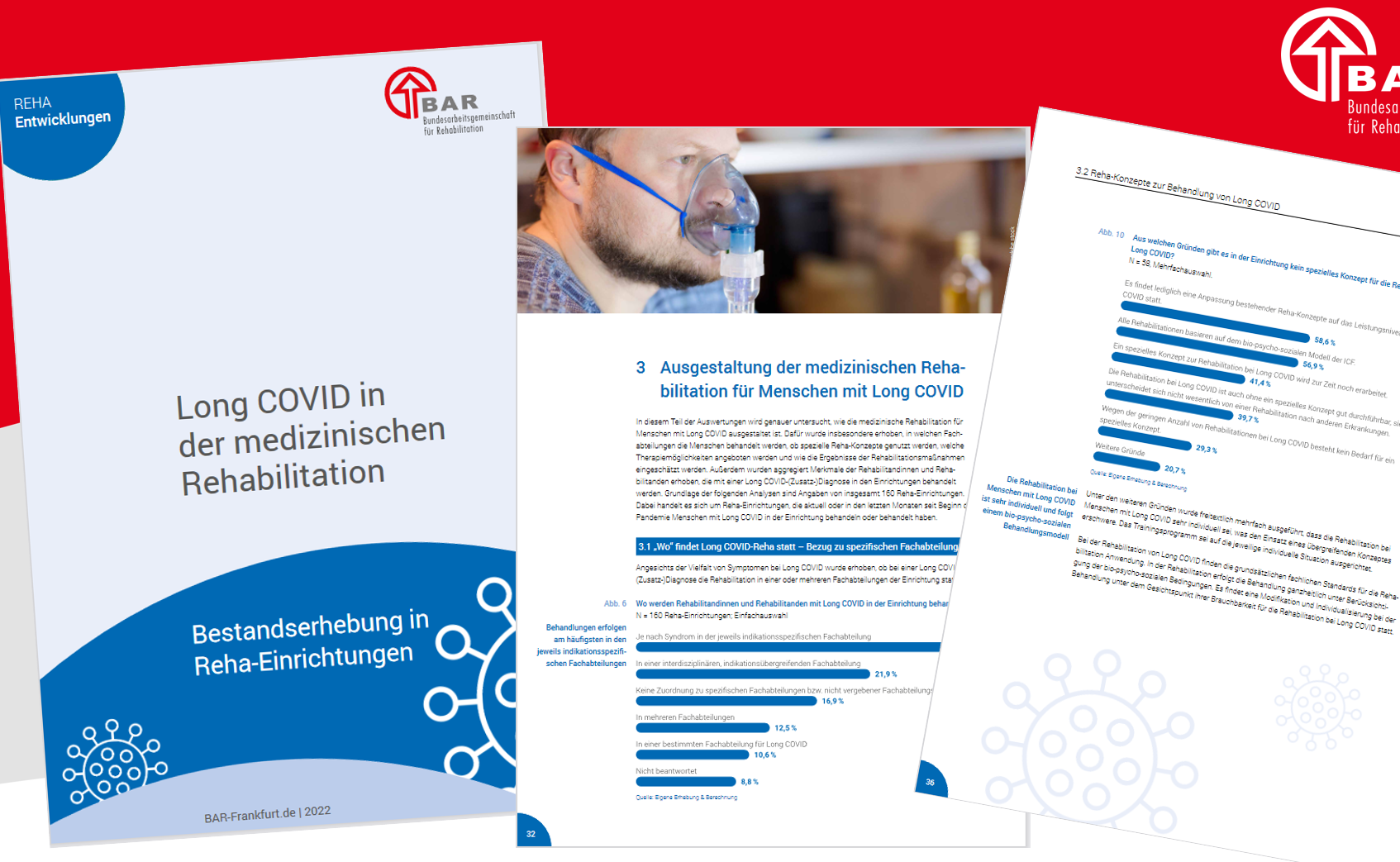 Wir wissen bereits heute, dass eine COVID-19-Infektion mit Spätfolgen für die Gesundheit der betroffenen Menschen verbunden sein kann. Für die Bewältigung der Auswirkungen der Corona-Pandemie ist das System der Rehabilitation mit seinen Unterstützungsmöglichkeiten von besonderer Relevanz. Um aussagekräftige quantitative und qualitative Daten zur Versorgungslage von Patientinnen und Patienten mit der (Zusatz-) Diagnose Long COVID in der medizinischen Rehabilitation zu gewinnen, führte die Bundesarbeitsgemeinschaft für Rehabilitation e.V. (BAR) eine Online-Befragung unter stationären Einrichtungen durch.