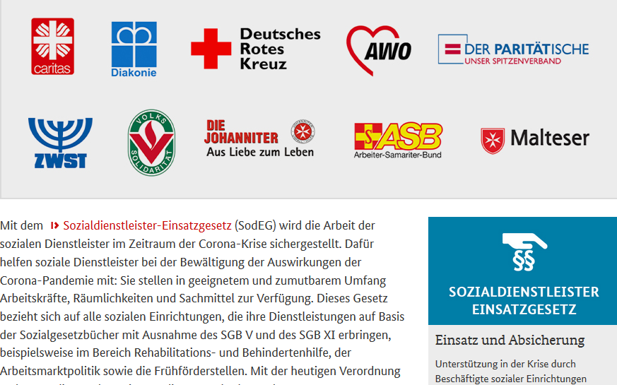 Am 27. März 2020 wurde das Sozialdienstleister-Einsatzgesetz (SodEG) verabschiedet mit dem Ziel, die Auswirkungen der Corona-Pandemie für soziale Dienstleister abzumildern und deren Bestand zu sichern.