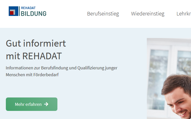 Das Portal REHADAT-Bildung steht nach Relaunch in neuem Layout bereit: mit erweiterten Inhalten und für mobile Endgeräte optimiert. Das Portal informiert (junge) Menschen mit Behinderungen und pädagogische Fachkräfte über den Einstieg und den Wiedereinstieg in das Berufsleben. Zielgruppe sind vor allem junge Menschen mit Förderbedarf, die sich informieren wollen, wie ihre berufliche Zukunft aussehen kann.