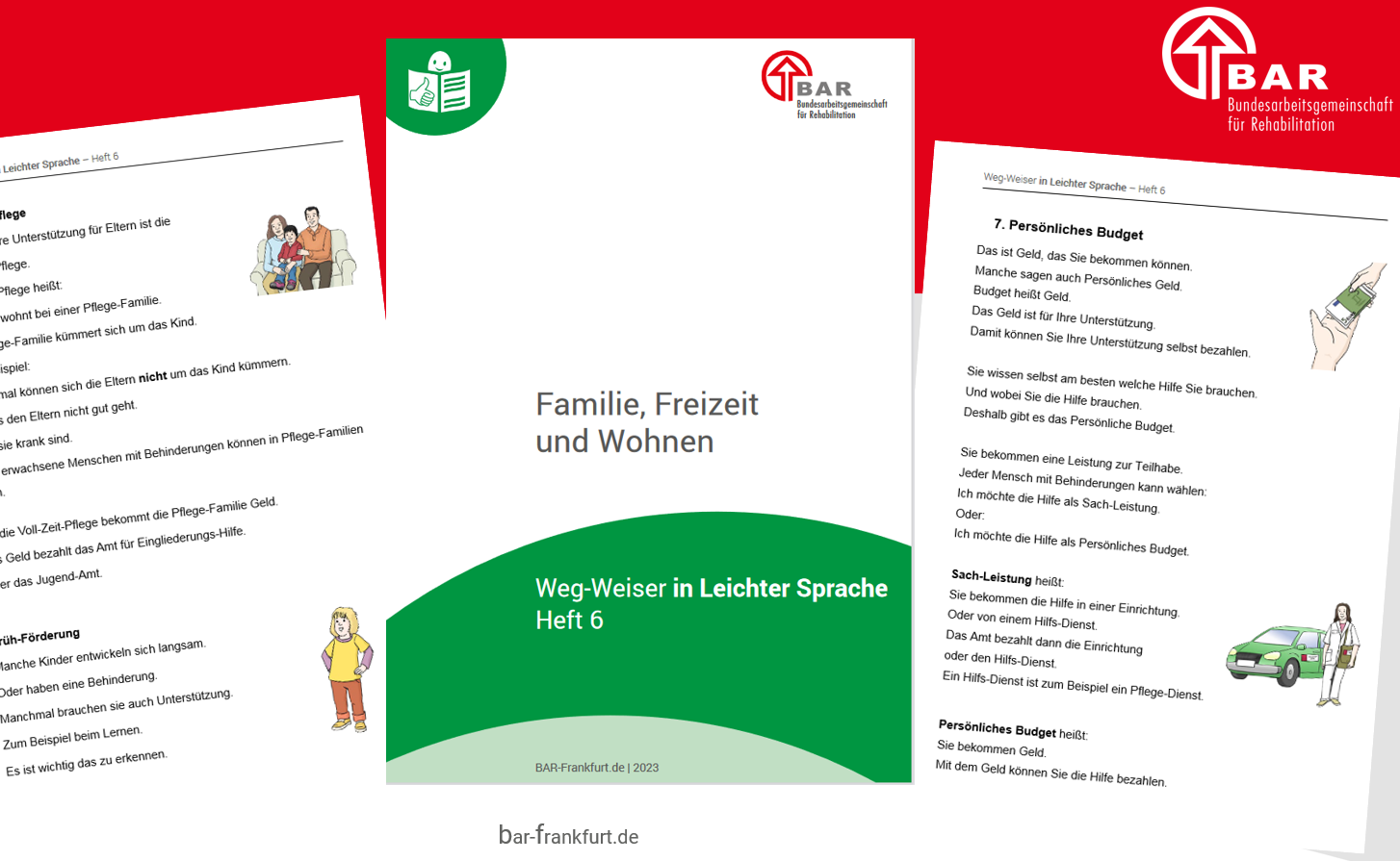Das bewährte Überblicks-Werk der BAR zu Rehabilitation in Deutschland, der "Wegweiser Rehabilitation und Teilhabe", erscheint auch in Leichter Sprache. Heft 6 des Weg-Weisers zum Thema "Familie, Freizeit und Wohnen" ist nun veröffentlicht und kann bestellt und heruntergeladen werden. Damit ist die sechsteilige Publikationsreihe, die sich in erster Linie an Menschen mit kognitiver Beeinträchtigung richtet, nun komplett.