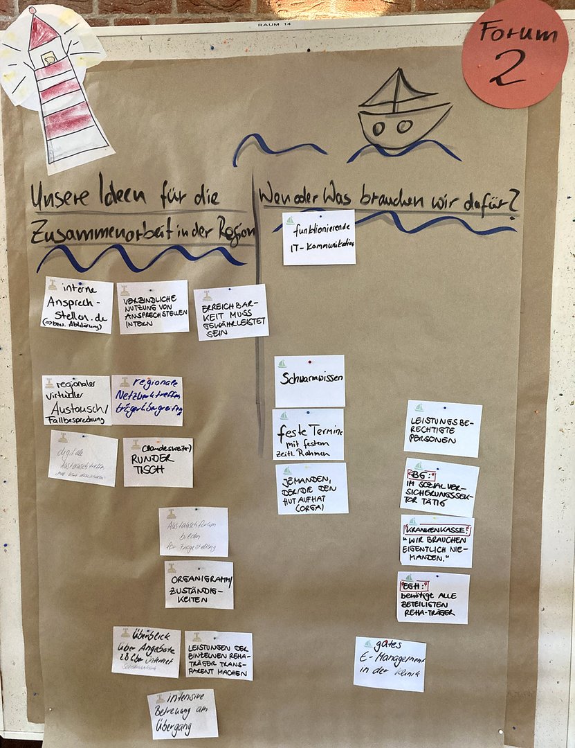 Gemeinsam diskutierten die Fachkräfte, an welchen Schnittstellen im Berufsalltag es eine intensivere Kooperation braucht – und welche konkreten Schritte man hier initiieren könnte. Um in der Praxis zügige Abstimmungen unter Einhaltung der engen Fristen sicherzustellen, dachten die Fachkräfte zum Beispiel an bilaterale Gesprächsformate und Hospitationen. Zur besseren Vernetzung der Reha-Träger könnten ebenso digitale Tools unterstützen, etwa ein landesspezifisches Verzeichnis, das Ansprechpartner listet und für alle zugänglich macht.