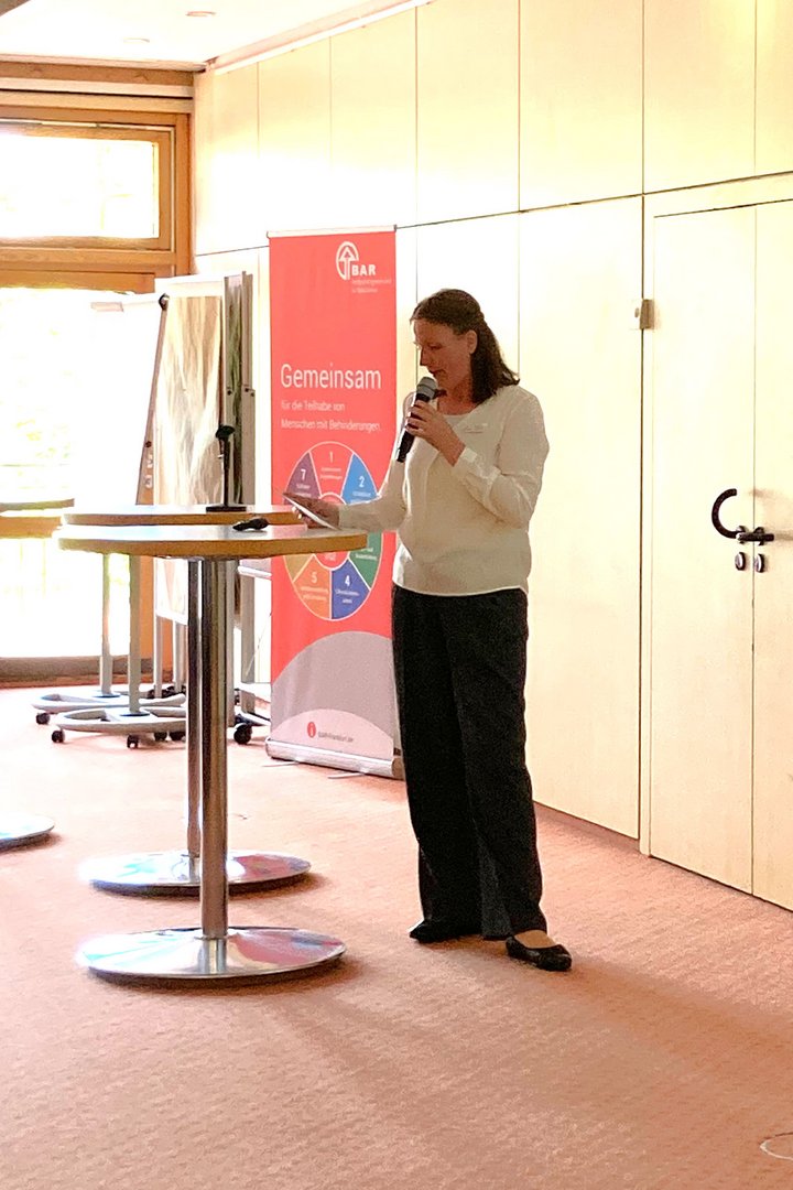 Bernd Giraud, Fachbereichsleiter Programme & Produkte, begrüßte die Teilnehmenden seitens des Veranstalters BAR und gab Einblicke in die Idee hinter der Netzwerkveranstaltung: die Stärkung der Zusammenarbeit von Reha-Praktiker:innen über trägerspezifische Gewohnheiten hinweg. Giraud hob bewusst das offene Konzept der Netzwerkveranstaltung hervor, das es erlaube, Teilhabe auch aus einem breitgefächerten Blickwinkel zu betrachten, über die Grenzen der eigenen Träger-Organisation hinaus und hin zu mehr Zusammenarbeit: "Wir freuen uns Ihnen heute einen Rahmen zu bieten, der vor allem Platz für das Kennenlernen und den Austausch bietet."