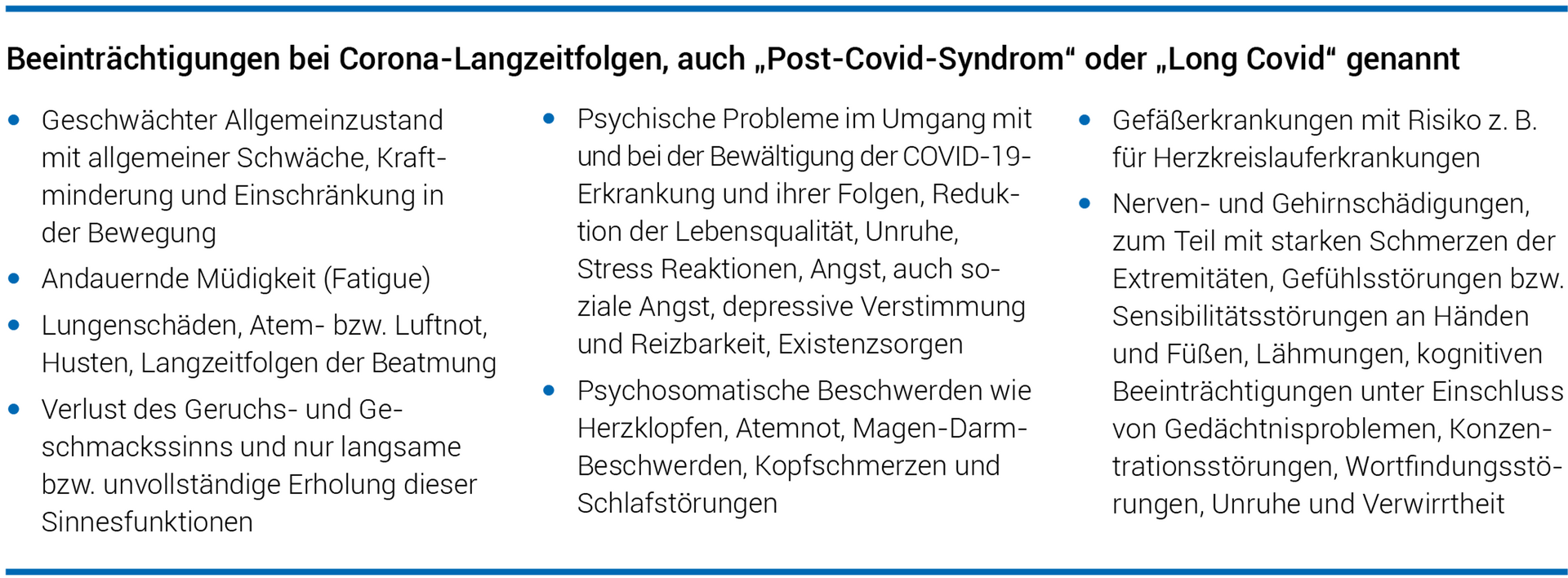 ihrer akuten Behandlung mit anhaltenden Beschwerden und Corona-Spätfolgen zu kämpfen hat (vgl. dazu z. B. Studien von Maxwell 2020; Taquet et al. 2020; Townsend et al. 2020; Van den Borst et al. 2020).