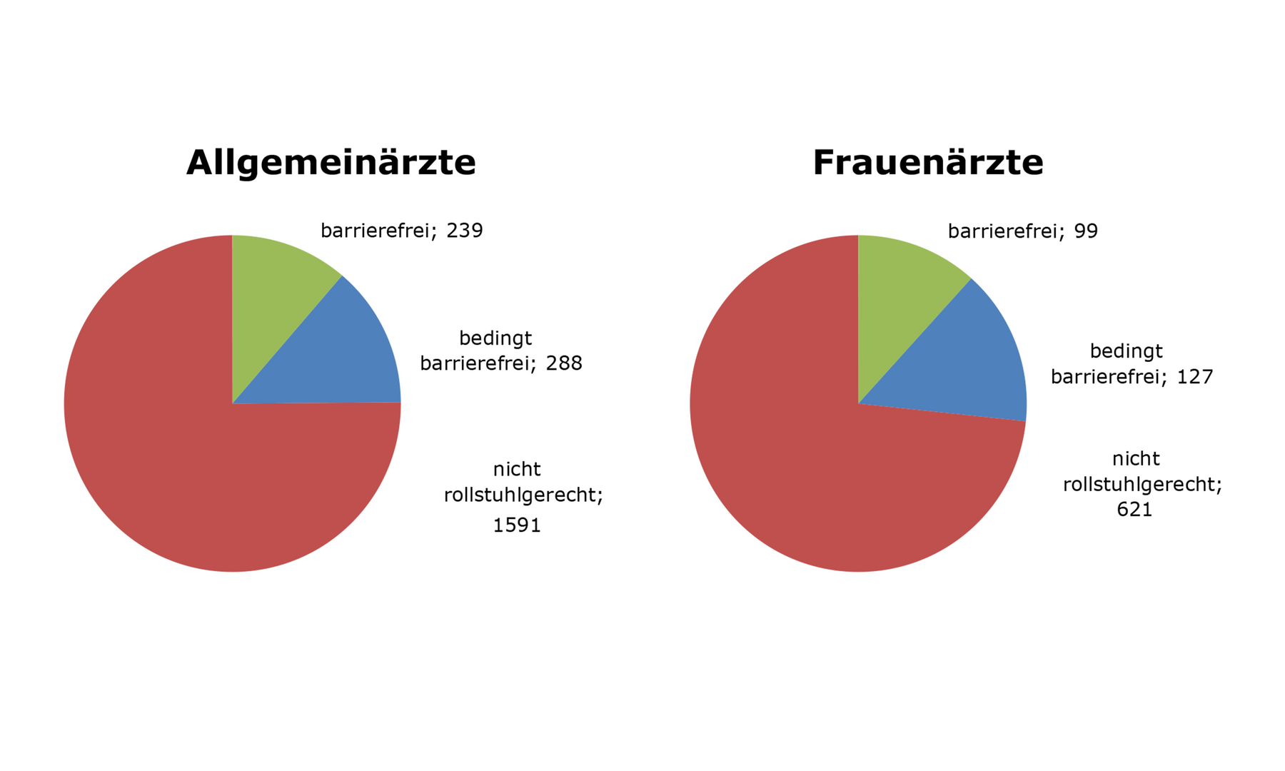 Wenn Rollstuhlfahrerinnen in Berlin einen ambulanten Gynäkologen aufsuchen möchten, weist die Arztsuche der KV zwar 99 Praxen mit Kassenzulassung aus, in die man als Rollstuhlfahrerin barrierefrei hineinkäme. Es gibt aber keine Aussage darüber, wie geeignet die Untersuchungsräume und -möbel sind und ob es barrierefreie Toiletten gibt. Würde ich ab dem 50. Geburtstag am Mamma-Screening teilnehmen wollen, bräuchte ich auf jeden Fall Assistenz, um auf einen höhenverstellbaren Hocker gehoben zu werden, den man vor das Röntgengerät stellen müsste, da ich selbst nicht mehr stehen kann. Für Rollstuhlfahrerinnen und -fahrer sind z.B. auch Augenarztpraxen und Pulmologen ein Problem, weil viele Untersuchungseinheiten fest verbaute Arzthocker und nicht verschwenkbare Behandlungseinheiten haben.