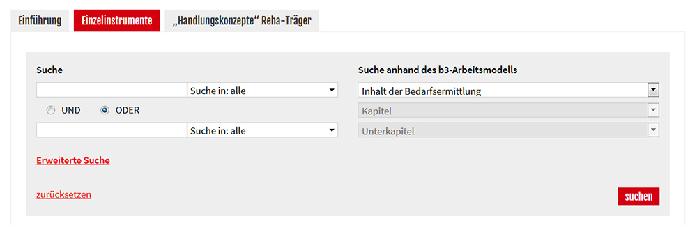 Bislang werden viele unterschiedliche Instrumente bei der Bedarfsermittlung eingeeingesetzt, nicht nur bei Leistungen zur Teilhabe am Arbeitsleben. Eine Studie im Vorfeld des b3-Projekts zeigte außerdem wesentliche Weiterentwicklungspotenziale im Bereich der Instrumente zur Bedarfsermittlung in der beruflichen Rehabilitation auf.